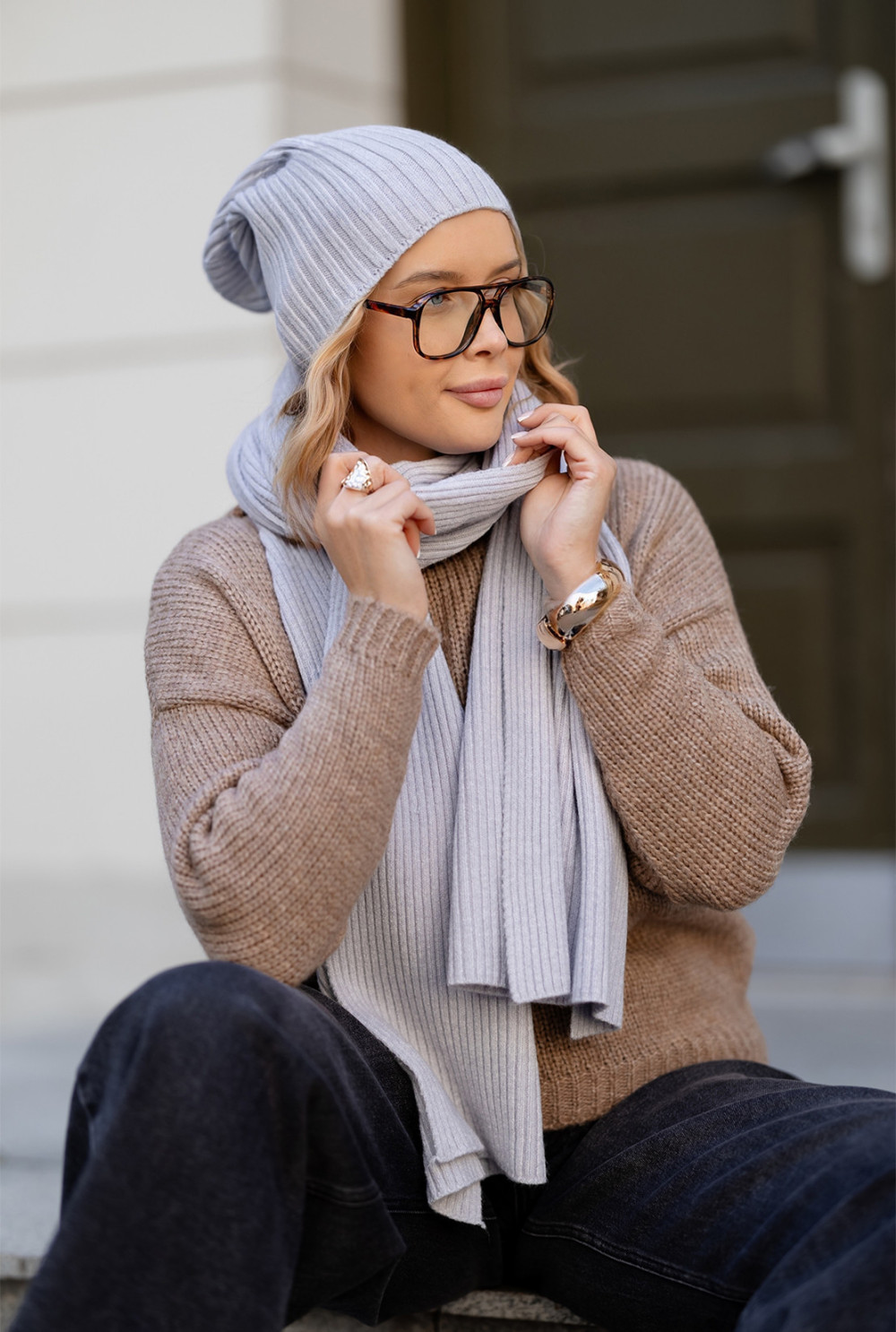 Komplet Elsa Czapka + Szal Szary