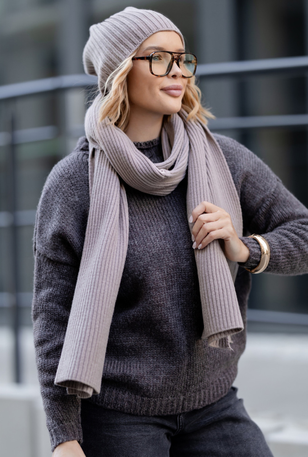 Miękki komplet idealny na chłodniejsze dni to propozycja, która sprawdzi się w każdej garderobie. Czapka połączona z długim szalem, stanowi świetne uzupełnienie codziennych looków. Ten zestaw dostępny jest w kilku wariantach kolorystycznych.