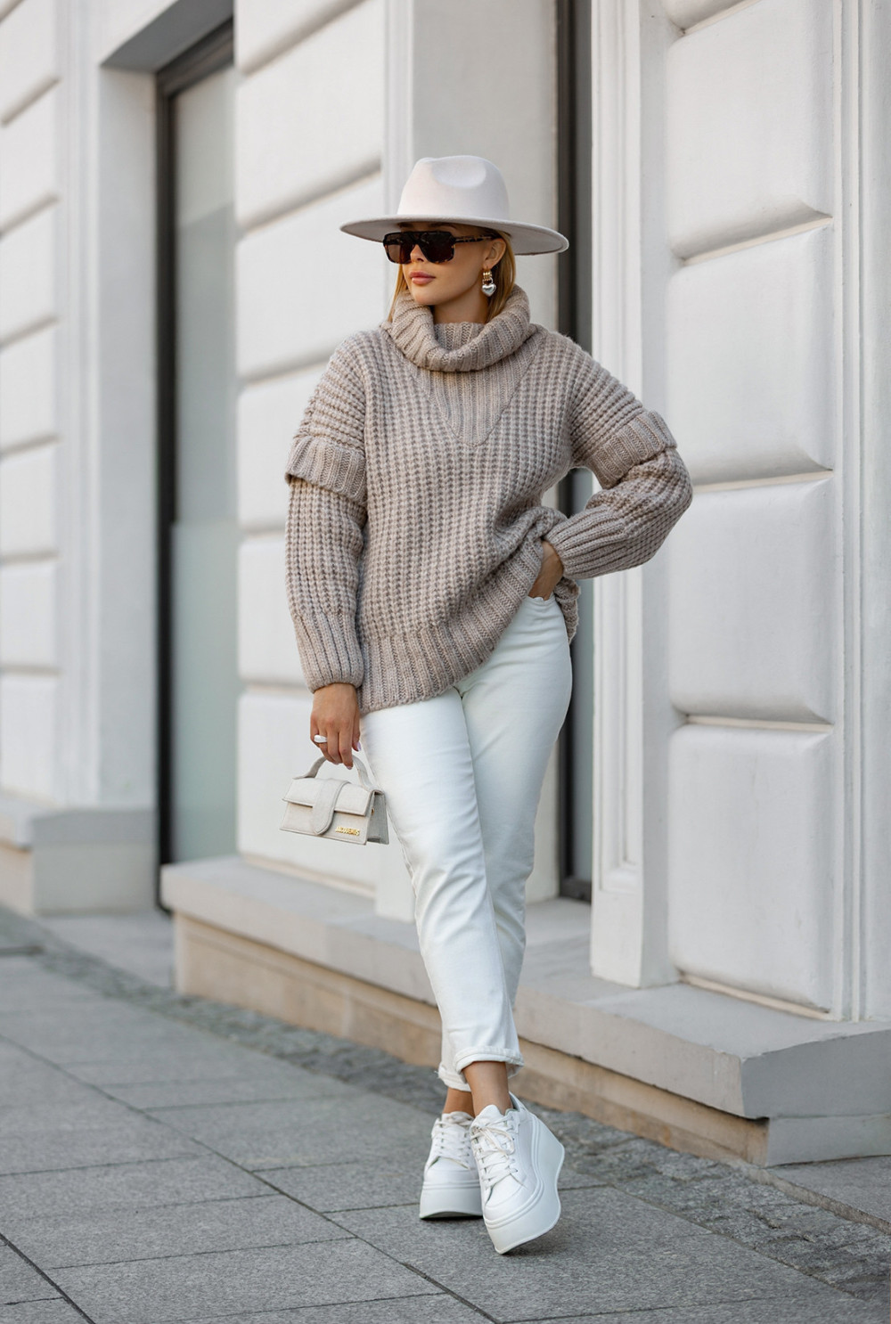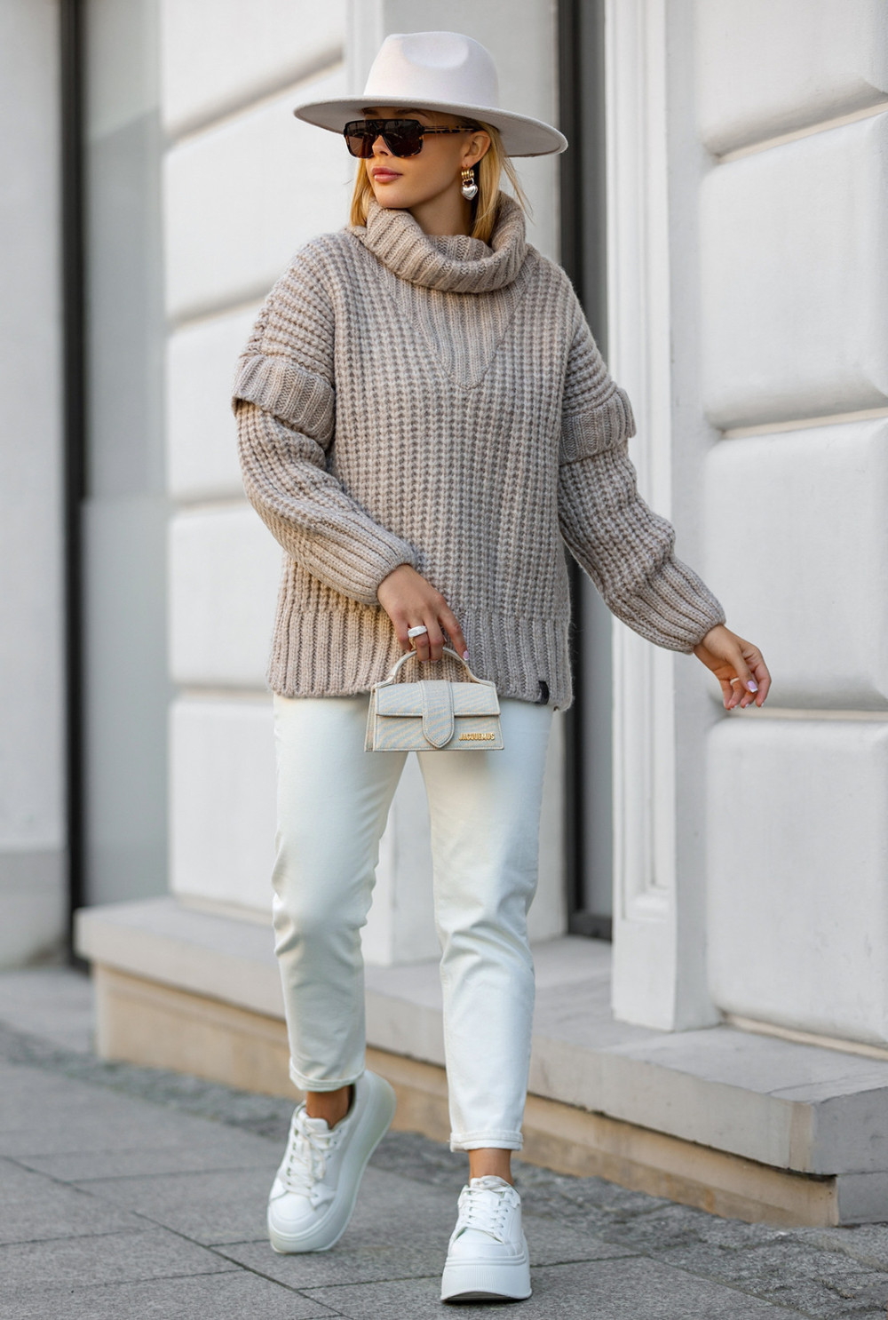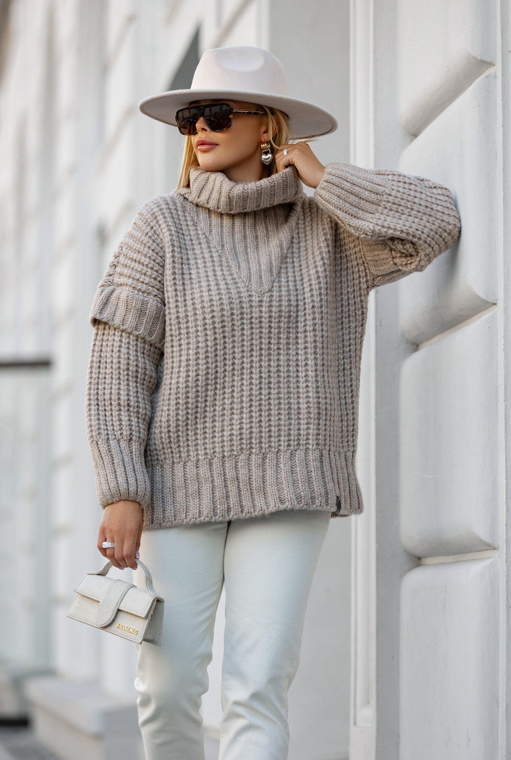 Sweter oversize z golfem Rosso Beż