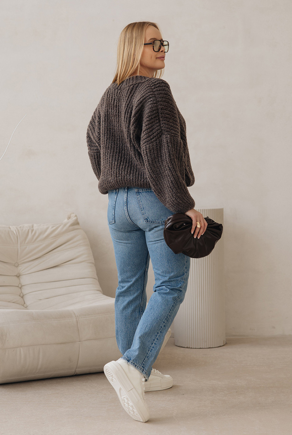 Sweter z dekoltem w serek Isabella Ciemne Kakao