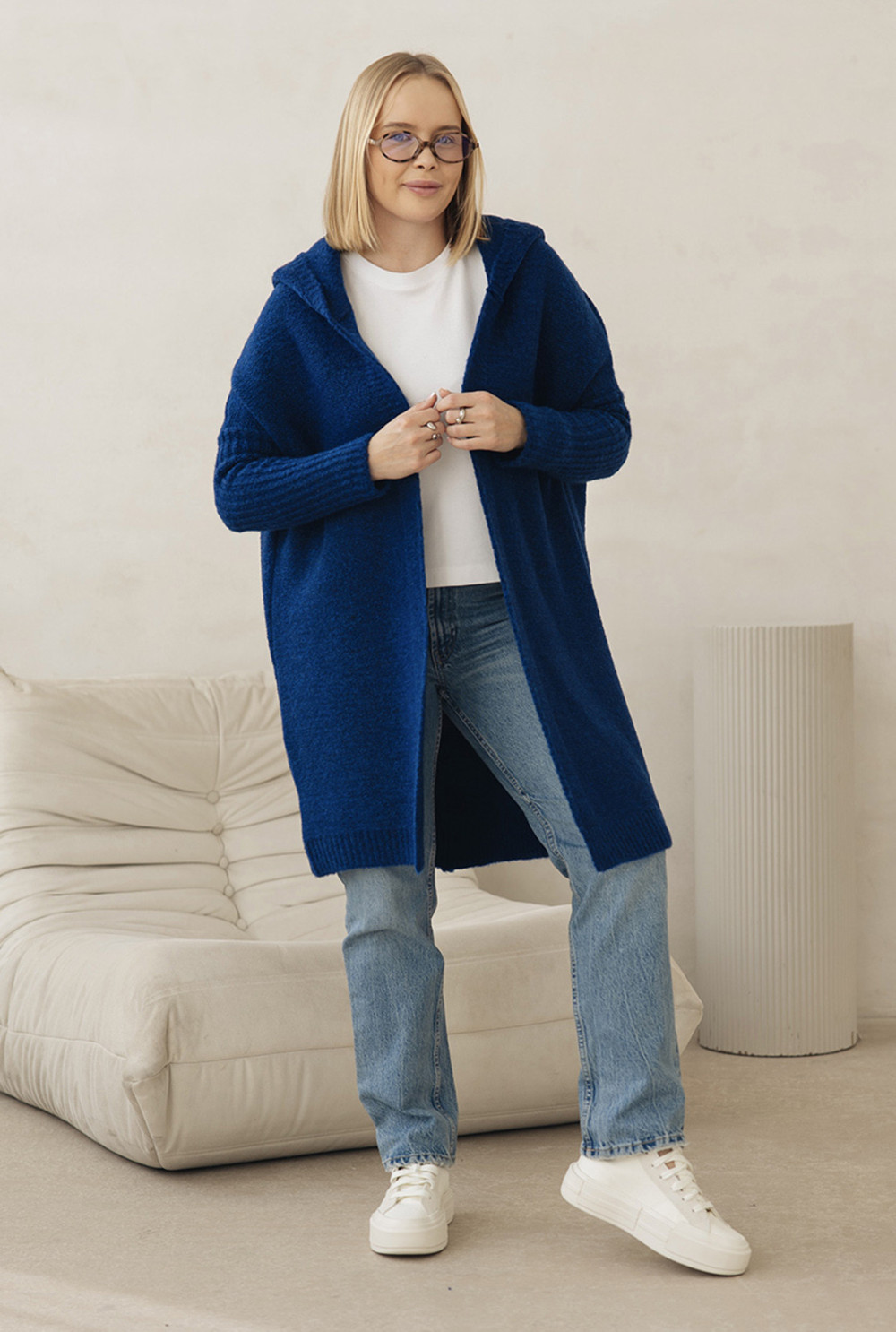 Kardigan z kapturem to propozycja, która koniecznie powinna znaleźć się w każdej garderobie! Model o prostym kroju, posiada przeszycie na plecach. Zakończony dłuższymi ściągaczami na rękawach. Dostępny w wielu kolorach!
