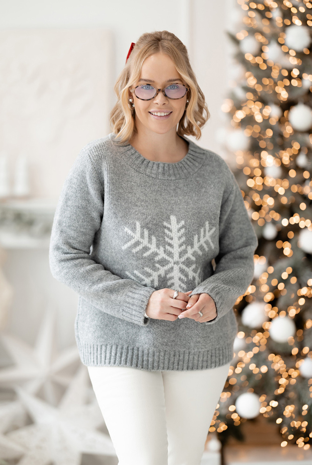Świąteczny sweter ze śnieżynką Snowflake Ciemny Szary