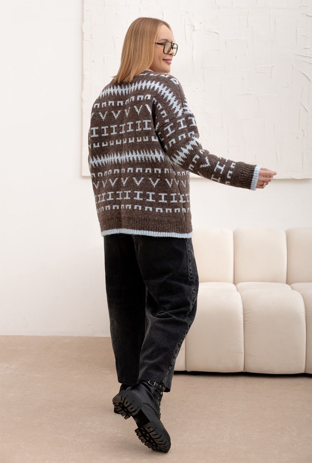 Sweter we wzory Charlotte Ciemne kakao-błękit