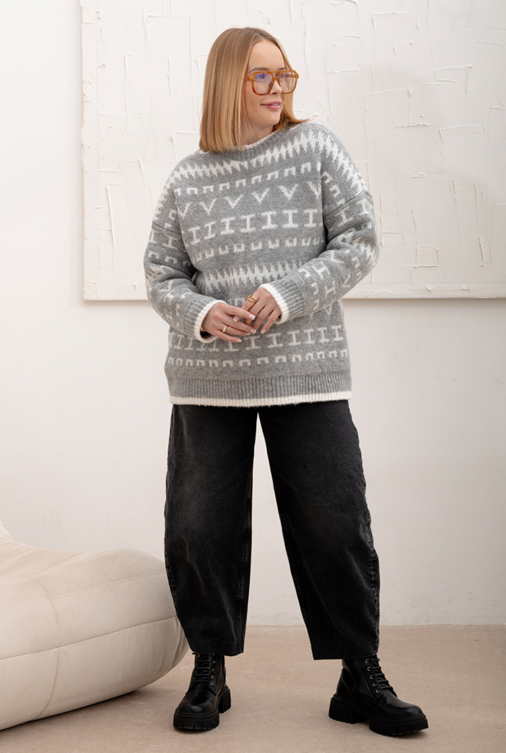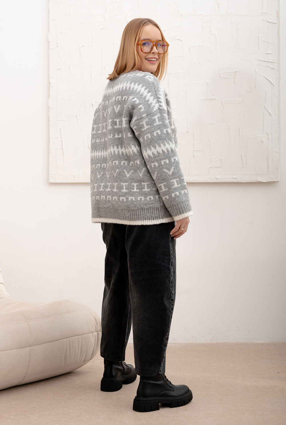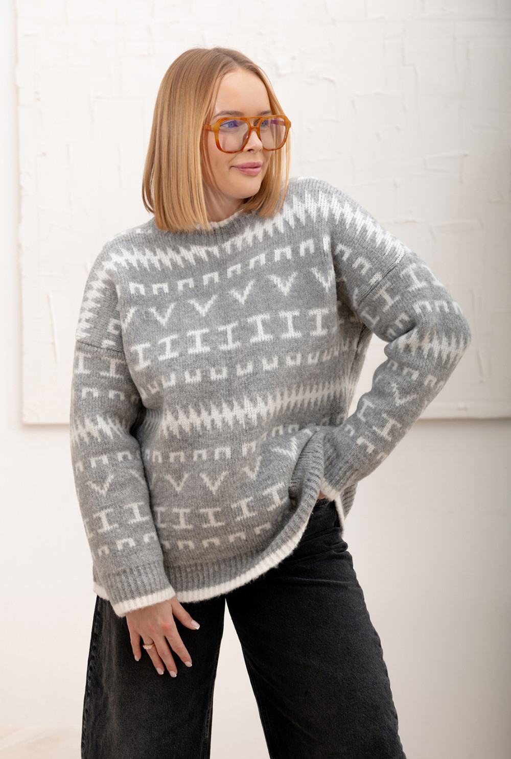 Sweter we wzory Charlotte Ciemny szary-ecru