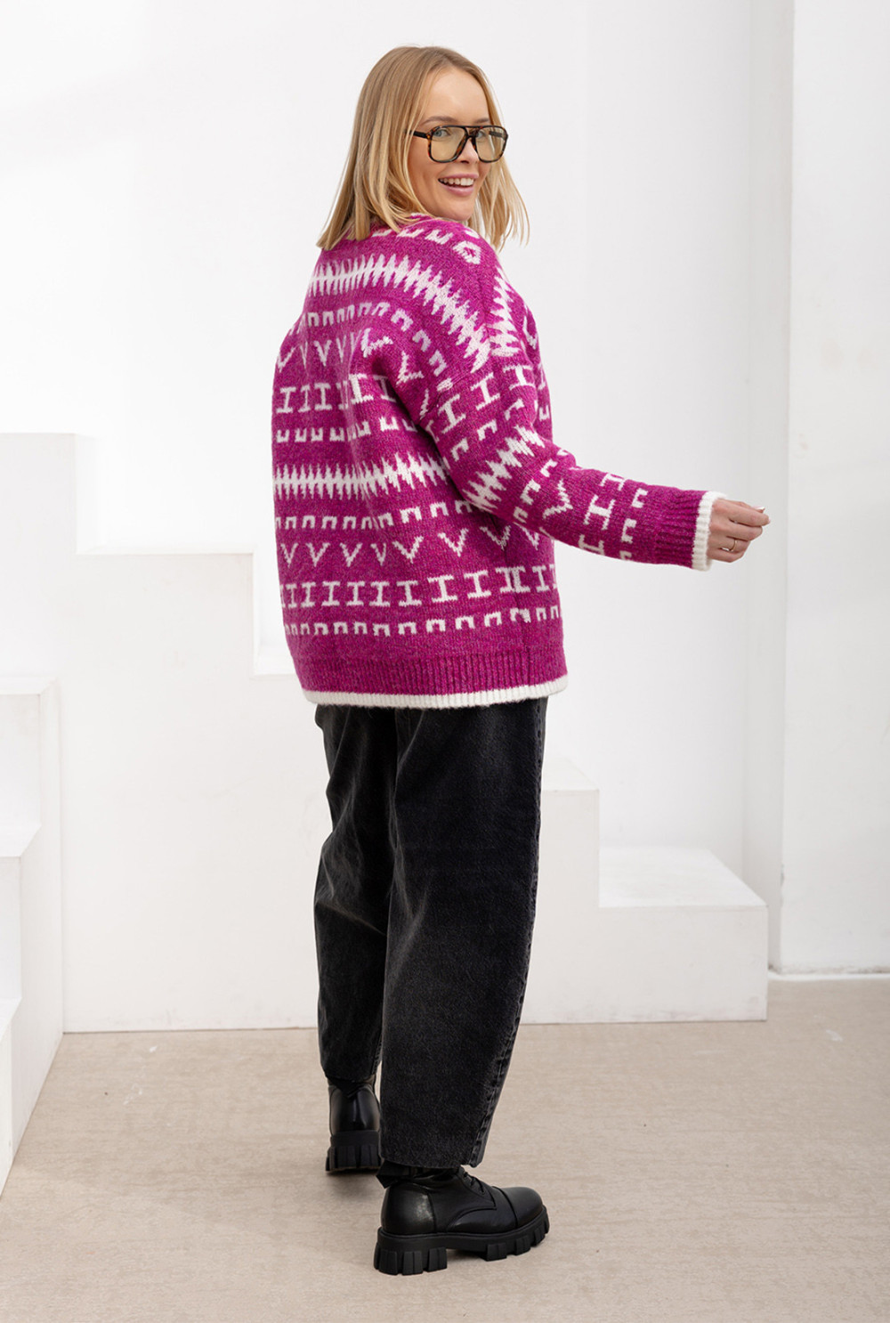 Sweter z geometrycznym wzorem to idealny wybór na chłodniejsze dni! Miękki, ciepły i niezwykle przyjemny w dotyku, wykonany z dbałością o każdy detal. Klasyczny fason z charakterystycznym, nordyckim motywem dodaje mu wyjątkowego stylu i ponadczasowego uroku. Model dostępny w wielu wariantach kolorystycznych.