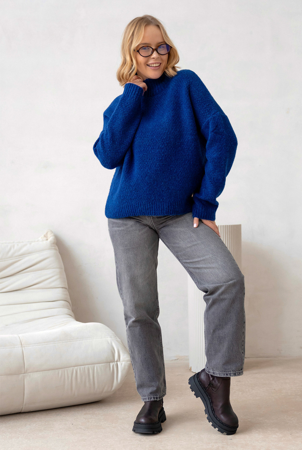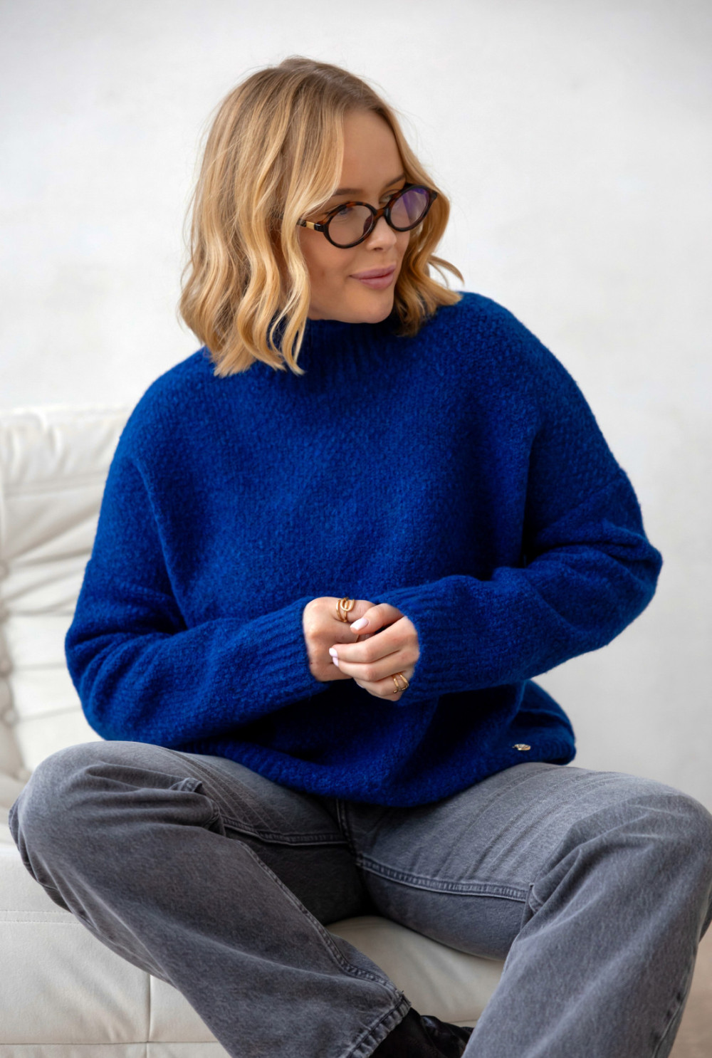 Miękki, ciepły sweter z golfem, idealny na chłodniejsze dni. Wykonany z dbałością o detale z wełna w składzie. Klasyczny, lekko oversizeowy krój dodaje mu nowoczesnego, a jednocześnie ponadczasowego charakteru. Dostępny w kilku wariantach kolorystycznych.