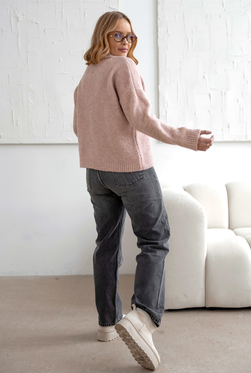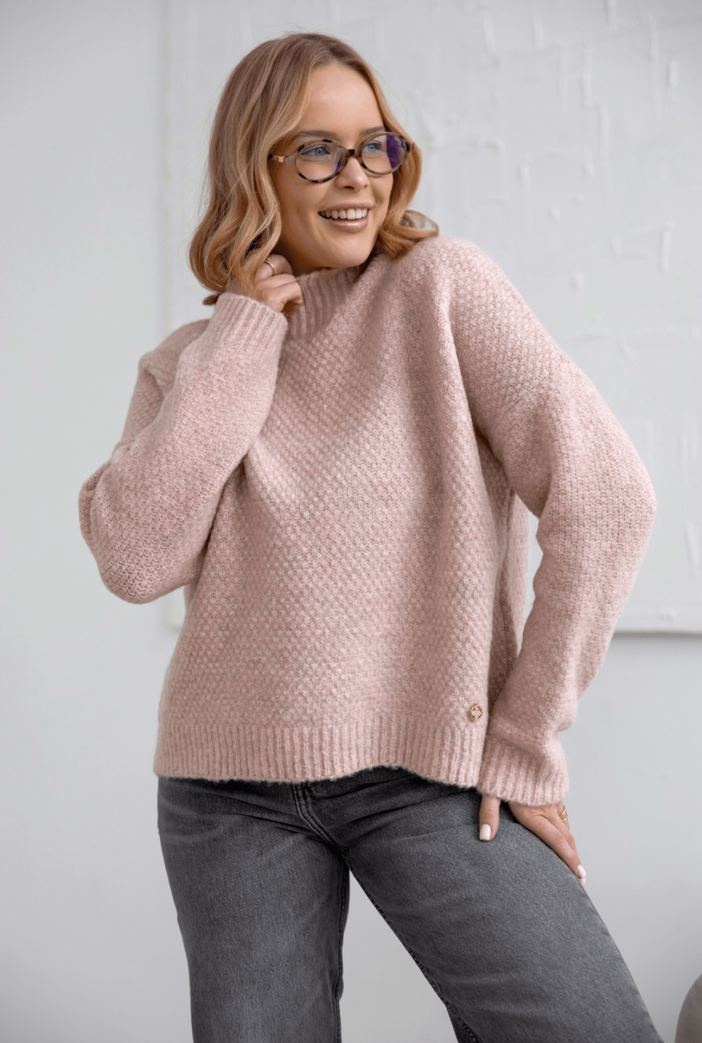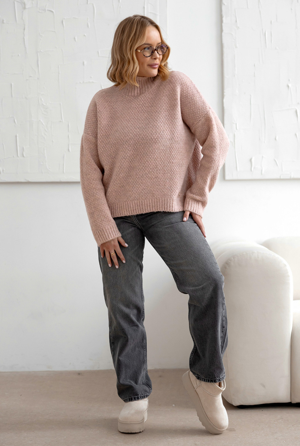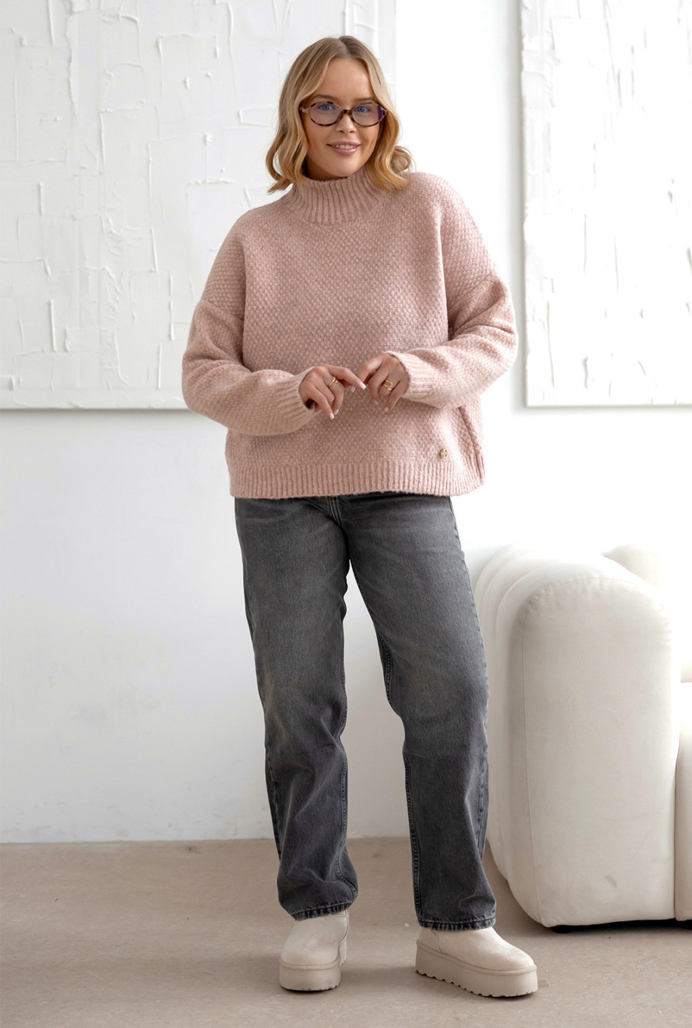 Miękki, ciepły sweter z golfem, idealny na chłodniejsze dni. Wykonany z dbałością o detale z wełna w składzie. Klasyczny, lekko oversizeowy krój dodaje mu nowoczesnego, a jednocześnie ponadczasowego charakteru. Dostępny w kilku wariantach kolorystycznych.