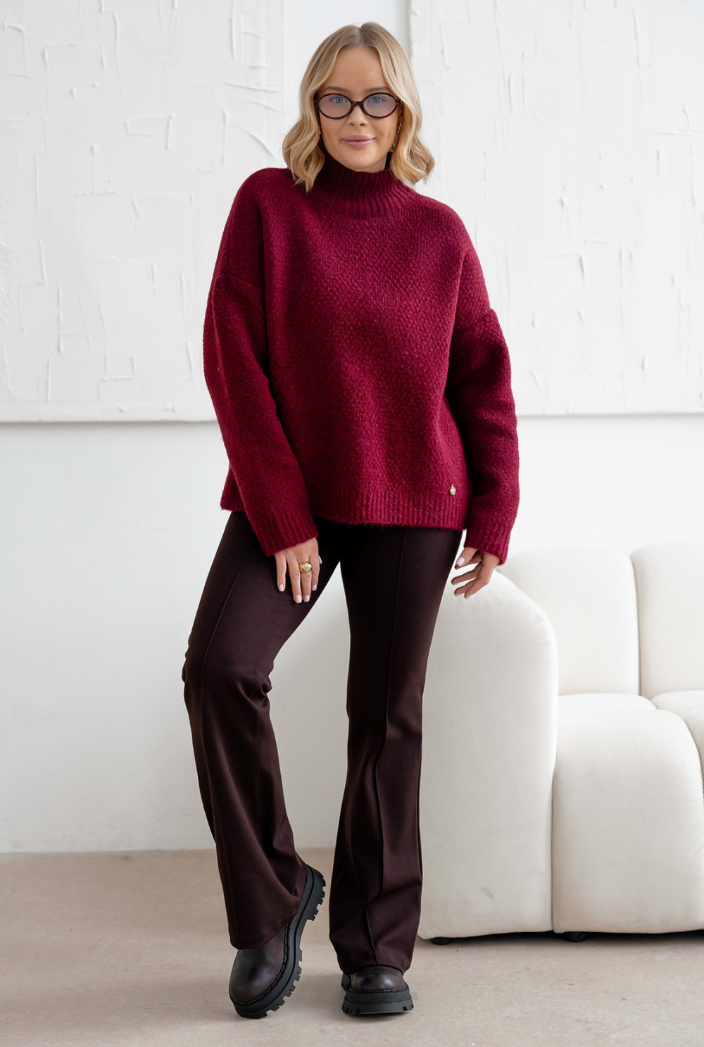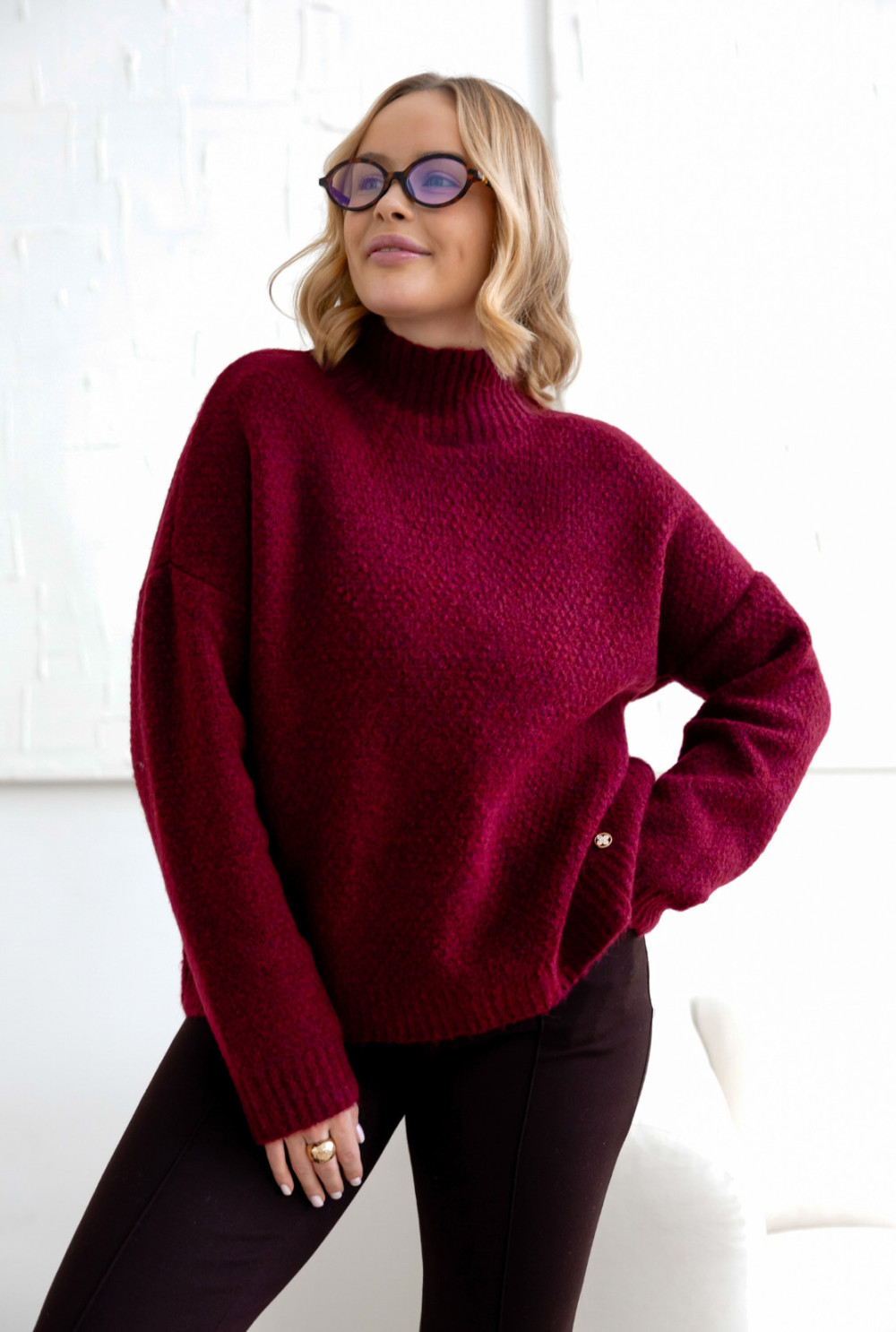 Miękki, ciepły sweter z golfem, idealny na chłodniejsze dni. Wykonany z dbałością o detale z wełna w składzie. Klasyczny, lekko oversizeowy krój dodaje mu nowoczesnego, a jednocześnie ponadczasowego charakteru. Dostępny w kilku wariantach kolorystycznych.