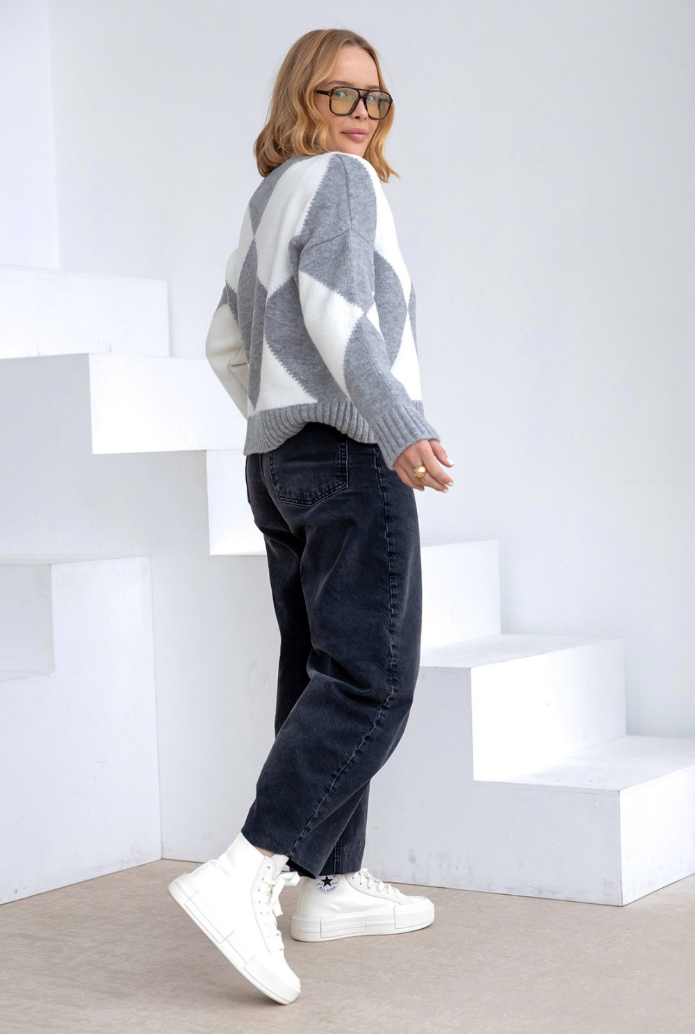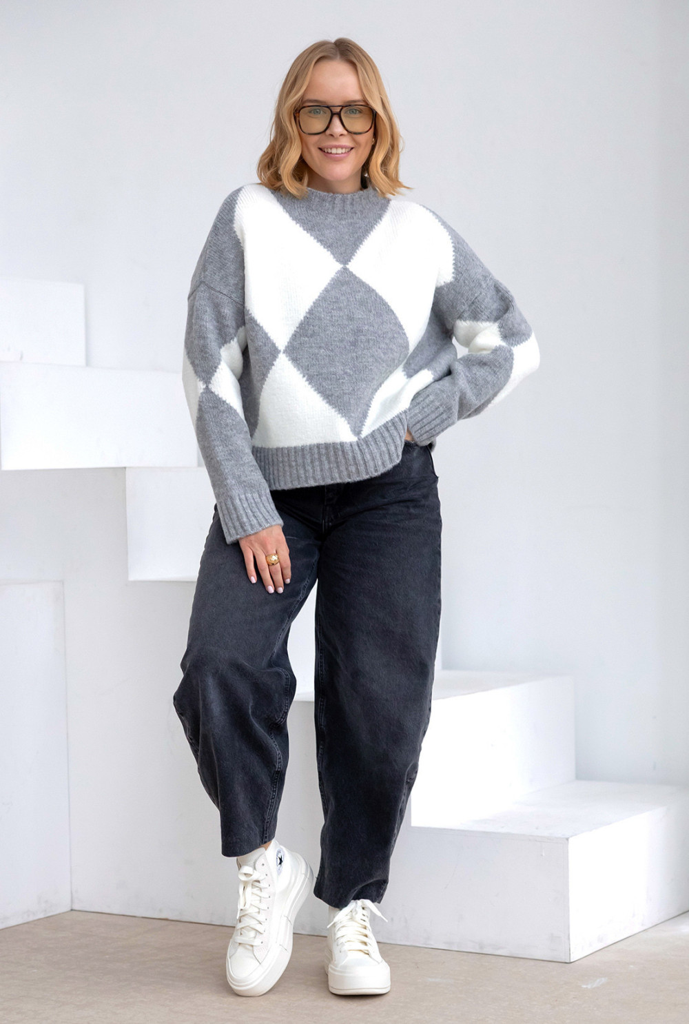 Sweter w romby Anastasia Ciemny szary-ecru