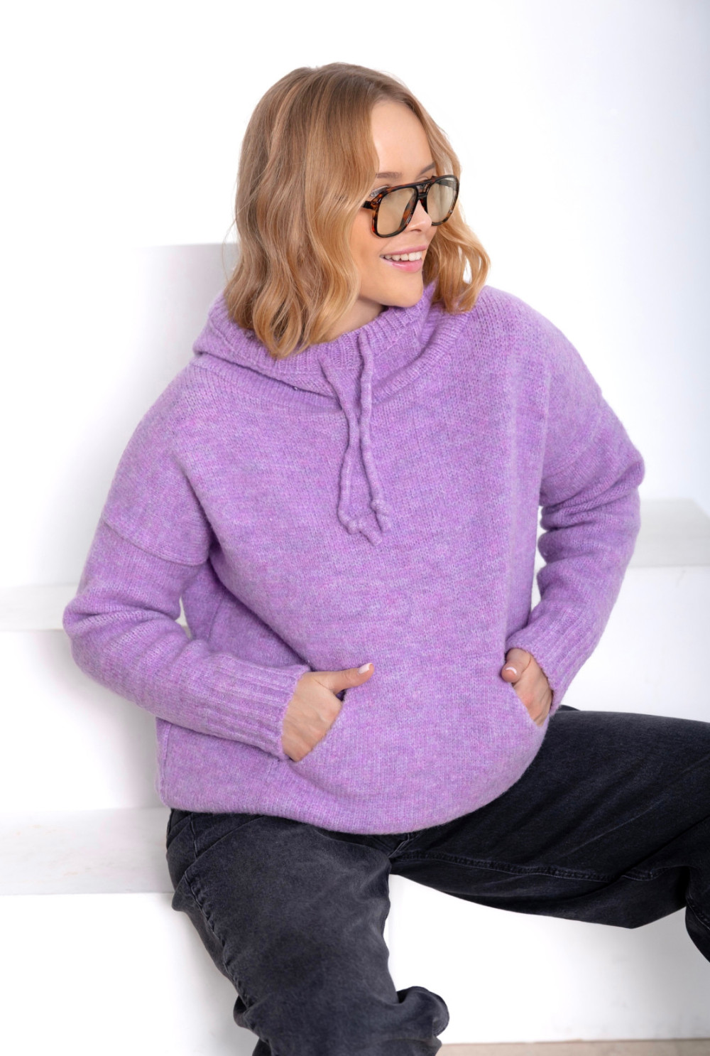 Sweter oversize z kapturem Kangurka Lila